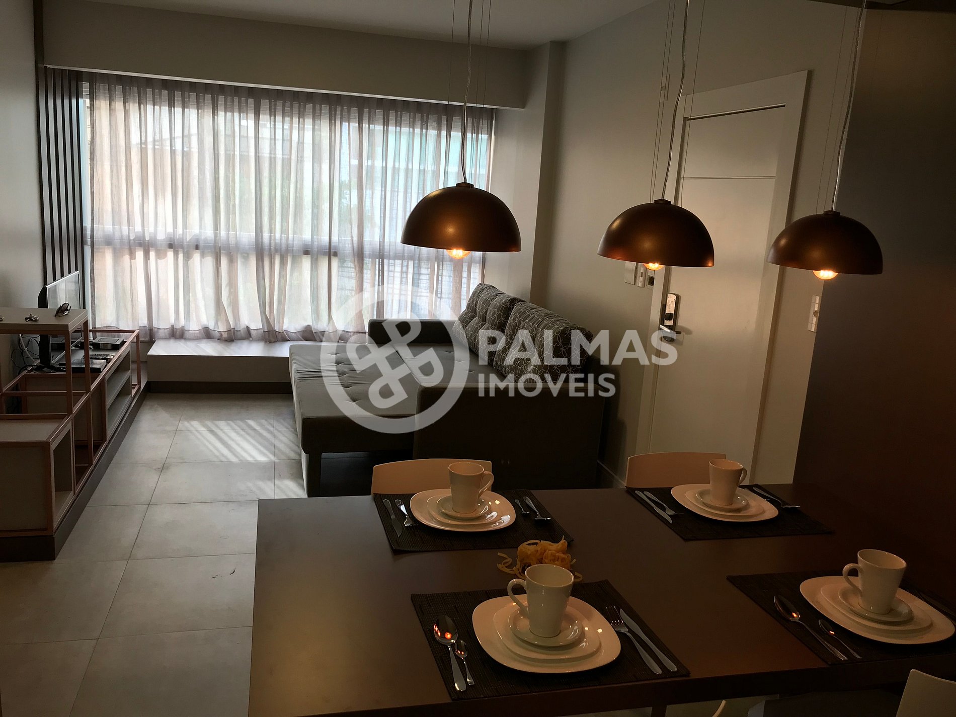 Sala e cozinha integradas, Smart TV com netflix, internet wifi, tv por assinatura pacote básico.